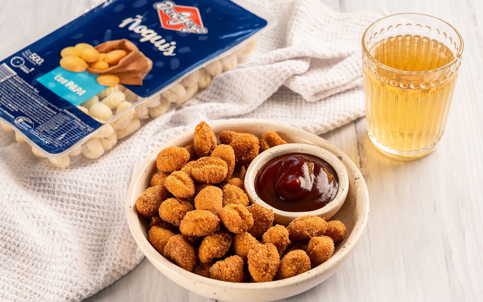 Don Yeyo potato gnocchi + coated in seasoned breadcrumbs + fried in very hot oil until golden. Serve with ketchup, mayo or your favorite dipping sauce. The most addictive snack ready in 10 minutes! Ideal for snacking while watching the game or as a starter.